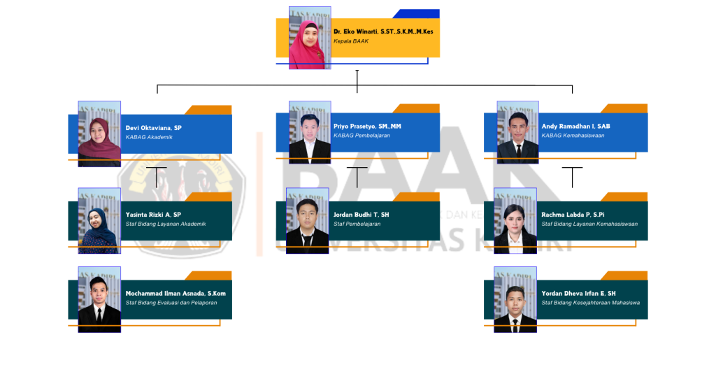 Ibu Dr. Eko Winarti, S.ST.,S.K.M.,M.Kes merupakan  Kepala dari Biro Administrasi Akademik dan Kemahasiswaan (BAAK)